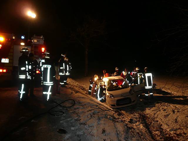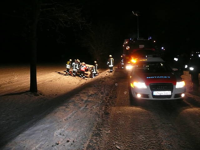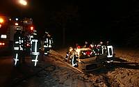 Erneut musste die Freiwillige Feuerwehr Werne zu einem schweren Verkehrsunfall ausrücken. Um 20:34 Uhr wurden die Kameraden des Löschzugs 1 Stadtmitte und Holthausen zu einem Verkehrsunfall alarmiert. Ein PKW war auf eisglatter Fahrbahn der Südkirchener Straße in Höhe Ehringhauser Weg ins Schleudern geraten und auf der Gegenfahrbahn mit einem LKW kollidiert. Dabei wurde der PKW stark zerstört und in den Straßengraben geschoben. Anders als der Erstmeldung zu entnehmen, war der Fahrer zwar nicht eingeklemmt, aber schwerstverletzt und musste nach notärztlicher Erstversorgung von Feuerwehr und Rettungsdienst aus dem Fahrzeug geborgen werden.