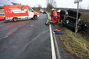 Um 15:51 Uhr am heutigen Samstagnachmittag wurde die Freiwillige Feuerwehr Werne zu einem Verkehrsunfall mit eingeklemmter Person alarmiert. Auf der Südkirchener Straße, Ecke Pagenstraße, hatte sich ein Auffahrunfall ereignet, bei dem nach aktueller Erkenntnis ein PKW mit hoher Geschwindigkeit auf ein anderes Fahrzeug aufgefahren war. Der auffahrende PKW wurde dabei in den Straßengraben geschleudert. Beide Fahrer wurden verletzt, der Fahrer des auffahrenden Fahrzeugs schwer, waren aber letztlich nicht in den Fahrzeugen eingeklemmt. Auch die beiden Insassen des auffahrenden Fahrzeugs wurden leicht verletzt. Sie wurden mit den RTW aus Kamen und Werne in das Krankenhaus transportiert. Vor Ort waren wegen des Meldebildes auch der Notarzt aus Werne sowie der Rettungshubschrauber Christoph 8. Die Feuerwehr, die mit 26 Einsatzkräften und fünf Fahrzeugen aus Holthausen sowie Stadtmitte vor Ort war, sperrte die Unfallstelle ab, stellte den Brandschutz sicher und nahm ausgelaufene Medien auf. Gegen 16:50 Uhr konnte die Einsatzstelle an die Polizei übergeben und der Einsatz für die Feuerwehr beendet werden.
