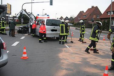 Um 14:55 Uhr am heutigen Mittwochnachmittag wurde die Freiwillige Feuerwehr Werne zunächst zu einer aufgelaufenen Brandmeldeanlage im alten Ikea-Lager (Wahrbrink) alarmiert. Ein Rauchmelder war offensichtlich wegen eines technischen Defekts aufgelaufen. Als ein Teil der Einsatzkräfte schon wieder abrückte kam es zeitgleich zu einem Verkehrsunfall an der Kreuzung Penningrode / Goetheweg. Während eines Abbiegemanövers hatte die Fahrerin eines VW-Busses ein von rechts kommendes Fahrzeug übersehen. Der junge Fahrer dieses Fahrzeugs wurde leicht verletzt ins Werner Krankenhaus gebracht.