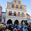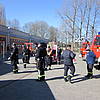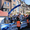 Unterbrochen wurde der Trubel lediglich von einem turbolenten Einsatz. Um 16:07 Uhr wurde Vollalarm inklusive Sirenenalarm gegeben, weil eine "Frohnatur" einen Druckknopfmelder im Alten Rathaus betätigt hatte. Der Löschzug rückte zur Einsatzstelle auf dem Marktplatz aus, wurde aber vom noch nicht beendeten Rosenmontagszug sowie hunderten Menschen ausgebremst, die den Marktplatz belagerten. Gut, dass es sich lediglich um eine böswillige Alarmierung handelte und tatsächlich nichts passiert war. So konnten die Einsatzkräfte nach Rückstellung der BMA die Anlage an den Eigentümer übergeben und wieder zum eigenen Fest zurückkehren.