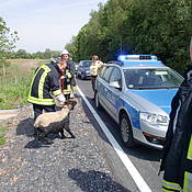 Am heutigen Freitag wurde der Löschzug Stockum (LZ 3) gegen 11:00 Uhr zu einer Tierrettung alarmiert. Ein Schaf hatte sich am Tibaum in einem Biotop "verirrt" und stand bis zum Bauch im Wasser. Es konnte sich nicht aus eigener Kraft retten. Die Feuerwehr musste das Schaf mit einem Seil und mit Hilfe einer Steckleiter aus dem Schlamm befreien. Sieben Kameraden des LZ 3 mit einem Fahrzeug waren vor Ort. Auch die Polizei war an der Einsatzstelle.