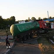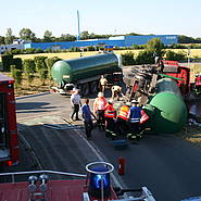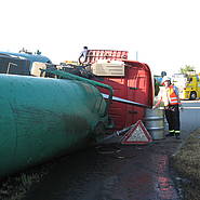 Um 18.04 Uhr am heutigen Montag wurde der Löschzug 1 zu einem verunglückten Gülle-Transporter am Kreisverkehr Capeller Straße / Nordlippestraße gerufen. Neben den geringen Mengen an Gülle liefen insbesondere Diesel und Hydraulik-Öl aus, das von der Feuerwehr aufgenommen wurde. Der Kreisverkehr musste für die Bergung des LKW immer wieder kurzzeitig in beiden Richtungen gesperrt werden. Nach der Bergung des LKW wurde die Einsatzstelle gereinigt und an die Polizei übergeben.