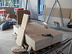 Es passiert schon mal, dass wir unsere Spinde suchen, die wir bewusst "mobil" gelagert haben, um sie während des Umbaus schnell versetzen zu können. Oder unsere meist ja blank polierten Einsatzstiefel sind etwas staubig geworden und wir müssen ohne die nötige Schuhpflege in den Einsatz... Gut auch, dass wir ein paar Bierzeltgarnituren besitzen, so dass wir jeden gerade noch freien Fleck für unsere Ausbildung und die Dienstabende nutzen können.