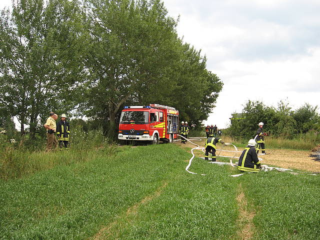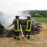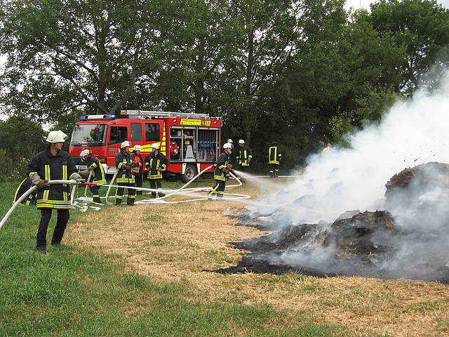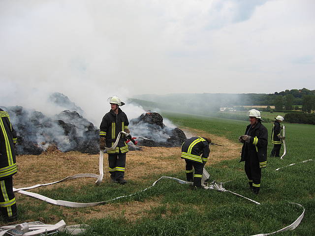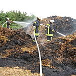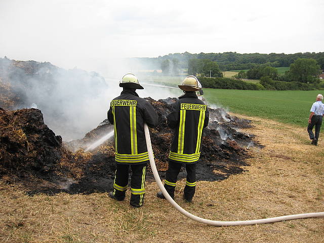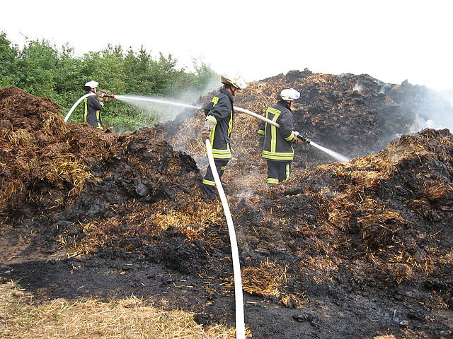Der Brand wurde von der Feuerwehr ähnlich wie der Scheunenbrand an der Selmer Landstraße Anfang Mai diesen Jahres behandelt. Nach Aufbau der Wasserversorgung von der Langener Straße wurde zunächst unter Vornahme von drei C-Rohren das offene Feuer gelöscht, um danach mit einem Radlader das Brandgut auseinander zu fahren und die Glutnester abzulöschen.
