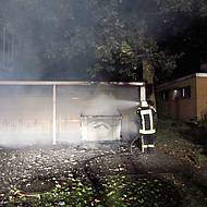 Um ca. 01.30 Uhr wurden alle Meldegruppen des Löschzuges Stadtmitte alarmiert, weil auf dem Hof des Alten Amtsgerichtes ein Container direkt neben einem Gebäude brennen sollte. Beim Eintreffen stellten die Einsatzkräfte fest, dass ein Papiercontainer unter einem überdachten Fahrradständer brannte. Das Feuer konnte relativ schnell mit einem C-Rohr gelöscht werden. Das Abdach war glücklicherweise aus Metall, so dass sich der Brand nicht weiter ausbreiten konnte. Lediglich etwas Farbe war durch die starke Hitzeentwicklung von dem Gestell abgeplatzt. Der Einsatz konnte nach rund 40 Minuten beendet werden.