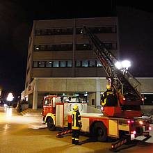 Auf dem Rückweg von dieser Einsatzstelle meldete die Rettungsleitstelle den Anruf eines Bürgers, der von seiner Wohnung aus gesehen hat, dass im Stadthaus in einem Büro noch eine Kerze brennen würde. Die Räume wurden gemeinsam mit einem Mitarbeiter der Stadtverwaltung, der zufällig vor Ort war abgesucht. Parallel wurden die Fenster von außen mit der Drehleiter kontrolliert. Es konnte allerdings keine brennende Kerze gefunden werden. Vermutlich handelte es sich um eine optische Täuschung.