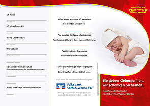 Jeder neugeborene Werner Bürger bekommt nun einen Rauchmelder zu seiner Sicherheit geschenkt.Gemeinsam mit der Volksbank Kamen-Werne e.G. wurde die Aktion ins Leben gerufen.