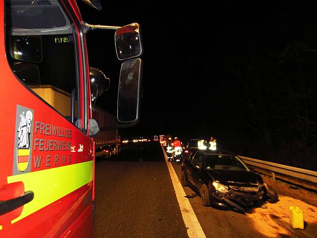 Am heutigen Dienstag wurde der Löschzug 1 der Freiwilligen Feuerwehr Werne um 20.31 Uhr zu einem Verkehrsunfall auf der Bundesautobahn 1 in Fahrtrichtung Bremen alarmiert.
