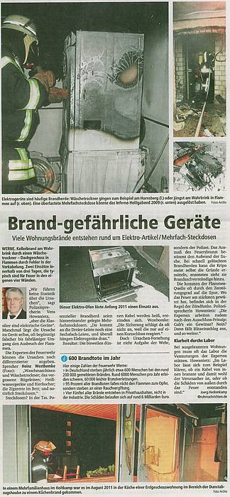 In diesem Jahr scheinen sich die Brände in Wohnungen zu häufen. Dachstuhlbrand Brevingstraße, Kellerbrand Hornsberg, Dachstuhlbrand Breslauer Straße, Kellerbrand Wahrbrink... Die Ruhr Nachrichten berichten heute in ihrer Tageszeitung über die Ursachen solcher Brände. Interviews mit Feuerwehr-Pressesprecher Heinz Westbomke und Polizeisprecherin Vera Howanietz geben wichtige Hinweise auf die "DOs" und "DONTs" im Umgang mit Elektrogeräten.