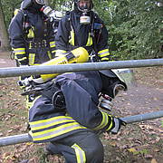 Nach der theoretischen Prüfung am letzten Lehrgangstag ging es in die Atemschutzübungsstrecke zum Feuerwehr-Service-Center nach Unna. Hier wurde in nahezu völliger Dunkelheit überprüft, wie sich die jungen Feuerwehrleute in problematischen Situationen, Enge, Hitze und teilweise Null Sicht orientieren können. Dazu müssen die AGT-Anwärter zu zweit ein enges Käfiglabyrinth bewältigen, das man streckenweise nur als Team überwinden kann. Spätestens in der „Röhre“, in der man sich kaum bewegen kann, lernt man die Hilfe des Truppkameraden zu schätzen – und jegliche Platzangst zu überwinden.
