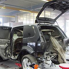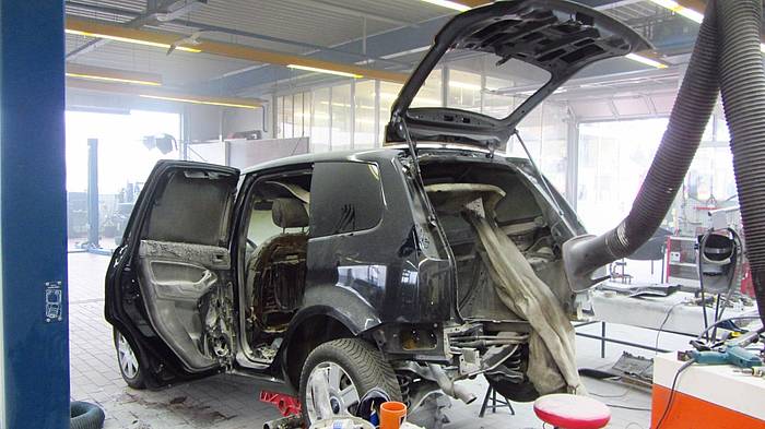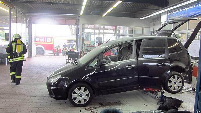 Dort war, vermutlich bei Schweißarbeiten, ein PKW in Brand geraten. Durch ein rasches Eingreifen der Mitarbeiter war der Brand beim Eintreffen der Einsatzkräfte bereits gelöscht und die Feuerwehr brauchte die Werkstatt nur noch mittels Hochdrucklüfter zu entrauchen.
