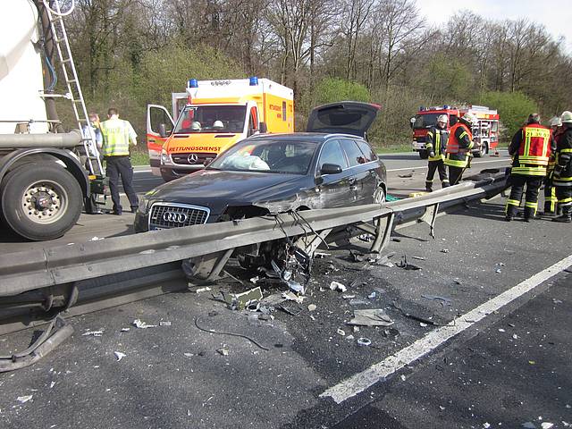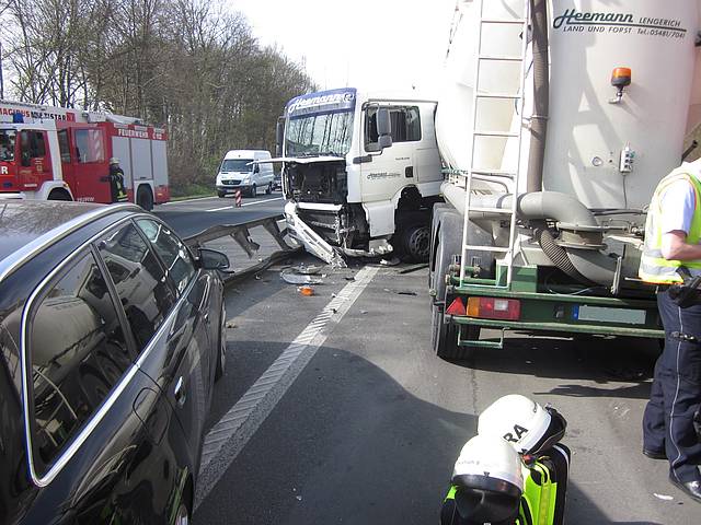 In Höhe des Rastplatzes Hasenkämpe war ein mit landwirtschaftlichen Produkten befüllter Tanklastzug aus ungeklärter Ursache von der Fahrbahn abgekommen und in Richtung Mittelleitplanke gerutscht. Dabei hatte er einen überholenden Audi in die Leitplanke gedrückt und diese aus der Verankerung gerissen und in den Gegenverkehr geschoben. Ein Fahrzeug aus dem Gegenverkehr touchierte die Leitplanke.