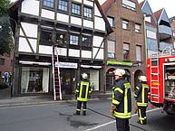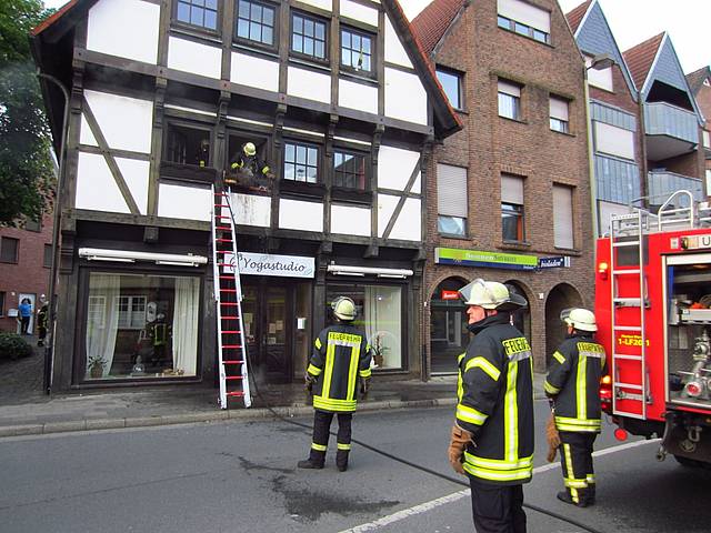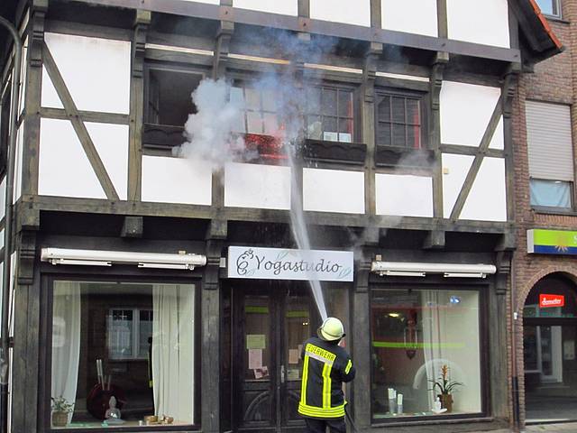 Ein brennender Blumenkasten aus Holz, der vor einem geöffneten Kippfenster stand rief heute Morgen um 05.38 Uhr den Löschzug 1-Stadmitte auf den Plan. Das Feuer konnte relativ schnell von außen über eine Leiter gelöscht werden. Der Rauch musste allerdings anschließend mittels Überdrucklüfter aus der leerstehenden Wohnung entfernt werden. Hierzu drang ein Trupp unter Atemschutz in die Wohnung vor. Da es sich bei dem Gebäude um ein Fachwerkhaus handelt, wurde die Wand unter dem Balkonkasten sicherheitshalber mit der Wärmebildkamera kontrolliert. Für die Bewohner in dem Mehrfamilienhaus bestand keine Gefahr, dass Gebäude musste nicht geräumt werden. Im Einsatz waren 12 Kräfte mit drei Fahrzeugen, ein Rettungswagen und die Polizei.