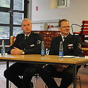 Das Wehrführer-Duo StBI Thomas Temmann (Wehrführer) und StBI Jörg Mehringskötter (stv. Wehrführer) führen die Feuerwehr Werne seit nunmehr sechs Jahren. Zur Besetzung der Positionen in der kommenden Amtsperiode ordnete KBI Ulrich Peuckmann diese Anhörung an und führte diese auch persönlich durch.