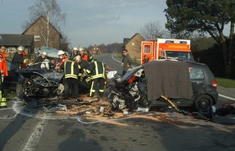 Um 7:15 Uhr kam es am 25.03.2010 zu einem schweren Verkehrsunfall mit Todesfolge für eine 36 Jahre alte Frau aus Werne. Eine weitere 40-jährige Unfallbeteiligte wurde bei dem Unfall schwerstverletzt und erheblich im PKW-Wrack eingeklemmt. Nachdem die polytraumatisierte Patientin befreit war konnte sie den Notärzten übergeben werden und wurde mit dem Rettungshubschrauber Christoph 8 ins Krankenhaus geflogen.