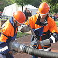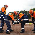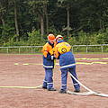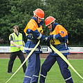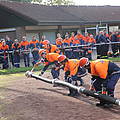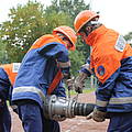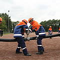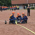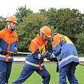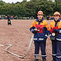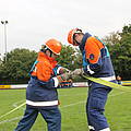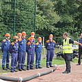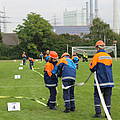 Bei bestem Wetter nahmen die Jugendlichen im Stadtteil Stockum den Wettkampf in Angriff. Und der hatte es in sich. An fünf Stationen mussten die mindestens 15-jährigen Angehörigen der Jugendfeuerwehr ihr Können unter Beweis stellen. In einem Theorieteil wurden sie in Allgemeinwissen, Staatskunde und natürlich zu feuerwehrtechnischen Themen geprüft. Sie mussten einen kompletten Löschangriff mit drei C-Rohren aufbauen und Wasser aus einem imaginären offenen Gewässer Pumpen. Dazu hatten sie maximal fünf Minuten Zeit – übrigens dieselbe Anforderung, die während eines Kreisleistungsnachweises an die „Großen“ gestellt wird!