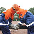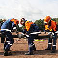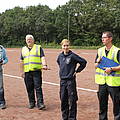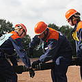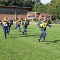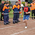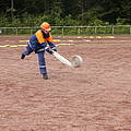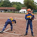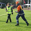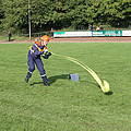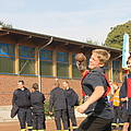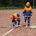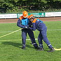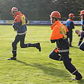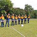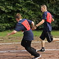 Zudem gab es den sportlichen Teil. Hier galt es als Team verschiedene Aufgaben zu lösen. Gewertet wurden immer die Teamleistungen. Im Kugelstoßen musste eine Gruppe zusammen 55 m erreichen, der Staffellauf über 1.500 m musste in 4:10 Minuten absolviert werden. Letztlich gab es noch eine Schnelligkeitsprüfung, in der von einem Verteiler acht C-Schläuche in 75 Sekunden verlegt werden mussten. Für jede Übung gab es Punkte, die sich zum Bestehen des Leistungsnachweises auf mindestens 10 Punkte addieren mussten. Auch das Erscheinungsbild und das Auftreten der Gruppe, klare Befehle etc. werden gewertet, so dass die Gruppe Zusatzpunkte erreichen kann.