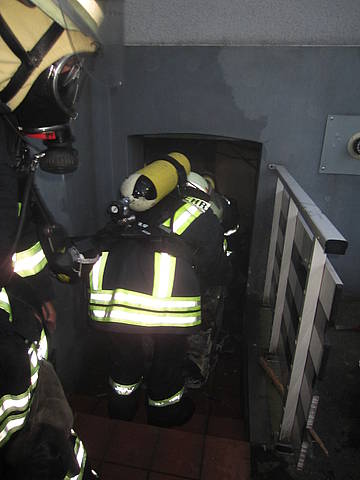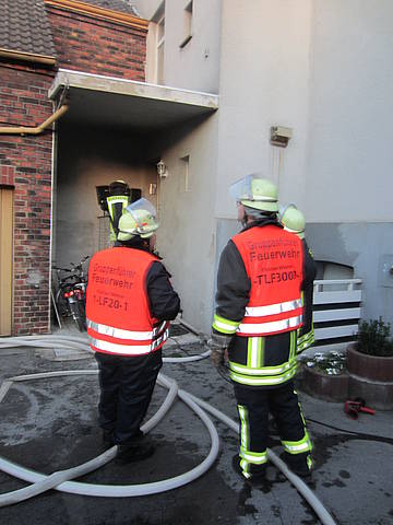 Weitere Trupps unter Atemschutz kontrollierten das Treppenhaus auf etwaige Verletzte und nachfolgend die Wohnungen auf Verrauchung. Das Feuer konnte schnell gelöscht und das Treppenhaus nachfolgend mittels Hochdrucklüfter vom Rauch befreit werden. Insgesamt wurden vier Trupps unter Atemschutz mit zwei C-Rohren eingesetzt, die ein Übergreifen des Feuers auf die Wohnungen verhindern konnten. Da alle Türen geschlossen waren, konnten die Bewohner nach dem Einsatz wieder zurück in ihre Wohnungen.