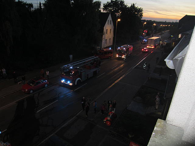 Um 19:07 Uhr am heutigen Freitag wurde die Freiwillige Feuerwehr Werne mit dem Einsatzstichwort Kellerbrand in die Stockumer Straße alarmiert. Die Löschzüge Mitte und Stockum rückten aus und fanden beim Eintreffen eine dramatische Situation vor. Drei Personen machten sich in 2. Obergeschoß bemerkbar, weil Ihnen der Fluchtweg über das vollständig verrauchte Treppenhaus versperrt war. Über die Drehleiter, die sofort in Stellung gebracht wurde, konnten die Personen, eine Frau und ihre beiden Kinder, schnell gerettet werden.