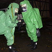 Zunächst wurde ein wenig Theorie wiederholt, die insbesondere den Dekon-Platz wieder ins Gedächtnis rufen sollte. Denn das Thema ABC stand mit einem größeren Theorieblock schon vor einer Weile auf dem Dienstplan. Für heute sollte jedoch lediglich die Neuerungen zur Bezeichnung der Dekon-Stufen sowie die Körperschutzformen in Erinnerung gerufen werden.