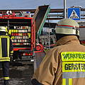 Schon früh mussten die Werner Feuerwehrleute heute aufstehen. Trotz des Wochenendes traf man sich schon um 6:45 Uhr an der Feuerwache. Aber diesmal ging es nicht um einen Einsatz, sondern um eine Übung. Vom Land angeordnet und vom Kreis initiiert hatte die Berufsfeuerwehr Lünen für den heutigen Samstag eine Großübung ausgearbeitet, die es in sich hatte. Auf dem Gelände des Trianel-Kraftwerks in Lünen war ein LKW in eine Leitungsbrücke gefahren und löste eine Kettenreaktion aus. Neben dem simulierten Austritt von Ammoniak war es zu einem schweren Unfall gekommen, in dem mehrere Kinder verletzt und eingeklemmt wurden.