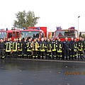 Das scheinbar überschaubare Szenario rief letztlich über 270 Feuerwehrleute und 64 Fahrzeuge auf den Plan. Neben den 30 Teilnehmern aus Werne (LZ 1 Mitte, LG 2 Langern, LZ 3 Stockum und Werkfeuerwehr Gersteinwerk) waren das auch andere Hilfsorganisationen wie DRK und THW. Das DRK trug eine "Real-Verletzten-Gruppe" bei, denen die Verletzungen realitätsnah aufgeschminkt waren.