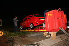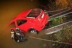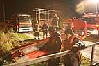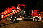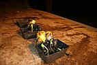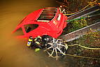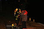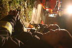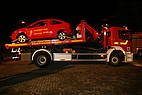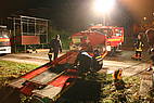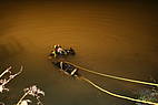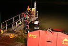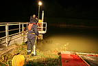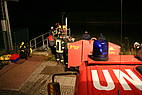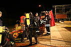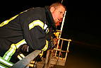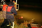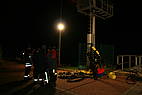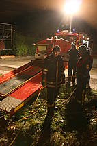 Viel helfen konnten wir den Tauchern bei der Rettung der Puppe und dem Anbringen der Hebekissen nicht, jedoch leisteten die sechs Kameraden aus Werne mit dem Rüstwagen ein wenig Unterstützung bei der Beleuchtung und hinterher beim Rausziehen des ÜbungsPKW per Seilzug.