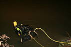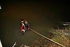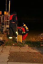Wie die folgenden Bilder zeigen, wurde das Übungsobjekt samt Puppe im Kanal versenkt, so dass wir den kompletten Ablauf eines möglichen Einsatzes dieser Art miterleben und lernen durften.