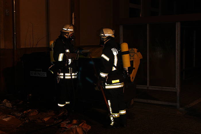 Mit Feuer und Sturm begann der Heilige Abend für die Freiwillige Feuerwehr Werne. Um 1:43 Uhr wurde der LZ 1 Stadtmitte zu einem Containerbrand in die Schulstraße gerufen. Aus unbekannten Gründen war ein Papiercontainer an der Wienbredeschule in Brand geraten. Der Brand konnte schnell von einem Trupp unter Atemschutz unter Kontrolle gebracht und gelöscht werden. Vorsorglich wurden weitere Container geflutet und die Nachbarschaft kontrolliert, da aufgrund des starken Windes brennende Papierfetzen in die benachbarten Hecken geflogen waren. Der Einsatz konnte nach 25 Minuten beendet werden.