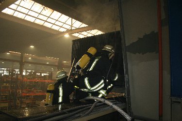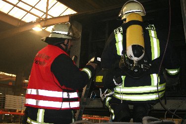 Um 8:56 Uhr am heutigen Dienstagmorgen (20.04.2010) gab es für die Feuerwehr Werne einen Vollalarm, d.h. alle Löschzüge und –gruppen wurde per Funkmeldeempfänger und Sirene alarmiert. Grund war der Brand in der Filteranlage einer Warmluftheizung im Produktionsbereich. Obwohl Mitarbeiter bereits mit den Löschmaßnahmen begonnen hatte, war die Produktionshalle beim Eintreffen der Feuerwehr erheblich verraucht, so dass ein Trupp unter Atemschutz vorging. Ein Hochdrucklüfter wurde in Stellung gebracht, um die Halle vom Rauch zu befreien. Der Atemschutztrupp demontierte das Filtervlies, löschte verbliebene Glutnester ab und kühlte die Anlage. Der Löscherfolg wurde mit der Wärmebildkamera überprüft. Danach konnte die Einsatzstelle an den Betreiber übergeben und der Einsatz um 9:44 Uhr beendet werden.