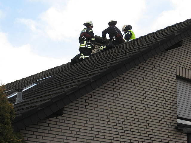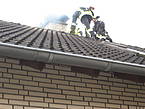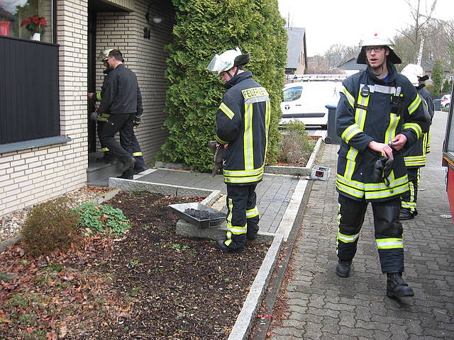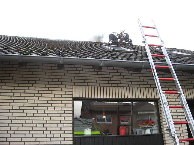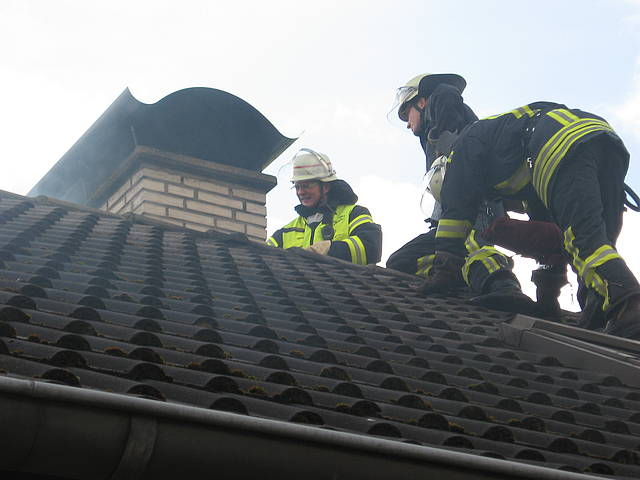 Um 11:32 Uhr wurde der Löschzug 1 der Freiwilligen Feuerwehr Werne zu einem Kaminbrand in der Barlachstraße gerufen. Der Hausbesitzer hatte seinen Kachelofen angeheizt und Nachbarn konnten daraufhin Flammen aus dem Schornstein schlagen sehen. Durch die umgehende Alarmierung der Feuerwehr konnte ein größerer Schaden vermieden werden. Ein Trupp - diesmal unter Begleitung des Einsatzleiters Thomas Temmann, der selbst Schornsteinfegermeister ist - bestieg das Dach mit Hilfe einer Steckleiter und kehrte den brennenden Ruß aus, der im Keller in einer Schuttmulde aufgefangen wurde. Parallel wurden die Etagen mit der Wärmebildkamera kontrolliert, aber keine Auffälligkeiten festgestellt.