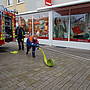 Mit etwas Verspätung begann die erste Gruppe um 11.30 Uhr. Sie durchlief verschiedene Stationen. So mussten beispielsweise Fragen beantwortet und ein Mülltonnenrennen absolviert werden. Zudem probierte sich die Jugendfeuerwehr im Schlauchkegeln. Die Gruppe Werne1 überzeugte mit ihren besonderen Kenntnissen in der Ersten Hilfe am Stand des Deutschen Roten Kreuzes.