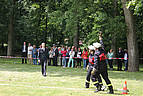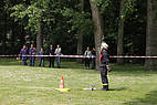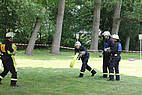 Die Jugendfeuerwehr, welche außerhalb der Wertung als erste Gruppe gelaufen ist, hat eine Zeit von 4.40 Minuten, als Endzeit inkl. dem Fehler also 4.55 Minuten.