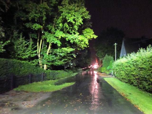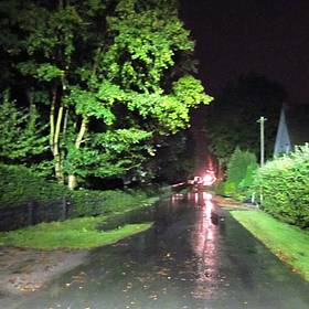 - Um 00.29 Uhr rückte der Löschzug Stadtmitte zur Straße „Am Sunderbach“ nach Langen aus. Dort standen mehrere Keller unter Wasser, da alle Gräben überliefen und sich in einer Senke ein großer See gebildet hatte (siehe Fotos).