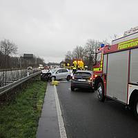 Um 9:17 Uhr wurde am heutigen Donnerstag der Löschzug 1 der Freiwilligen Feuerwehr Werne zu einem Verkehrsunfall mit vier Verletzten alarmiert. Auf der Bundesautobahn A 1 in Fahrtrichtung Köln hatte sich kurz vor dem Parkplatz Fuchseggen ein Auffahrunfall ereignet. In den Verkehrsunfall waren fünf Fahrzeuge verwickelt. Ein Fahrer wurde schwer, drei leicht verletzt in Krankenhäuser der Umgebung eingeliefert. Ein älteres Ehepaar aus dem Steinfurter Raum kam aufgrund der guten Reaktion des Fahrers mit dem Schrecken davon und konnte die Unfallstelle selbstständig verlassen.