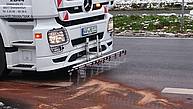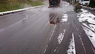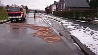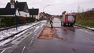 Die kritischen Stellen, die eine Verkehrs- und Umweltgefahr darstellten, streute die Feuerwehr unmittelbar mit Bindemittel ab. Um das Bindemittel aufzunehmen und die Straße fachgerecht zu reinigen wurde aus Drensteinfurt ein auf Umwelttechnik spezialisiertes Unternehmen beauftragt.