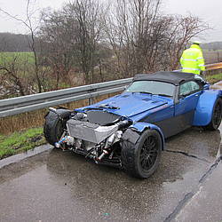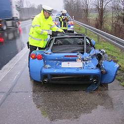 Gegen 15:37 Uhr kam es dann zu einem Unfall auf der Bundesautobahn 1 in Fahrtrichtung Köln. Hier hatte ein Fahrer offensichtlich sein Gefährt auf regennasser Fahrbahn unterschätzt und war mit der Leitplanke kollidiert. Der Fahrer wurde verletzt vom Rettungsdienst ins Krankenhaus gebracht. Die Feuerwehr sicherte die Einsatzstelle und klemmte die Batterie ab, um einen etwaigen Brand zu verhindern. Bei diesem Einsatz waren 14 Einsatzkräfte mit ebenfalls drei Fahrzeugen unterwegs und konnten gegen 16:15 Uhr wieder einrücken.