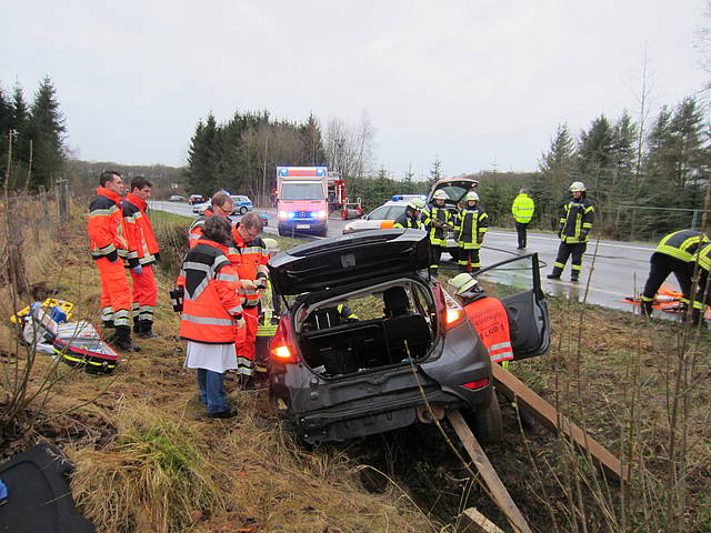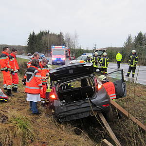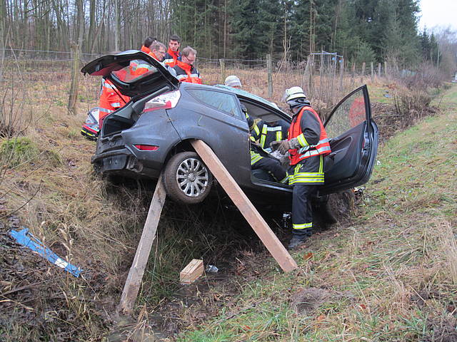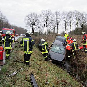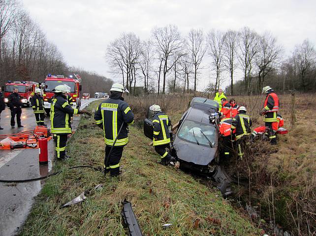 Um 15.32 Uhr wurden der Löschzug 1 Stadtmitte sowie die Löschgruppe 2 Langern mit dem Einsatzstichwort "Verkehrsunfall mit eingeklemmter Person" alarmiert. Der Fahrer eines PKW kam auf der Selmer Landstraße nach links von der Fahrbahn ab und landete dort im Graben. Er wurde bei dem Unfall leicht verletzt. Nachdem er vom Rettungsdienst erstversorgt war die Feuerwehr das Fahrzeug stabilisiert hatte, konnte er über die Beifahrertür aus dem Fahrzeug befreit werden.