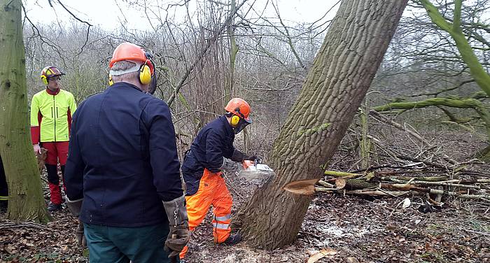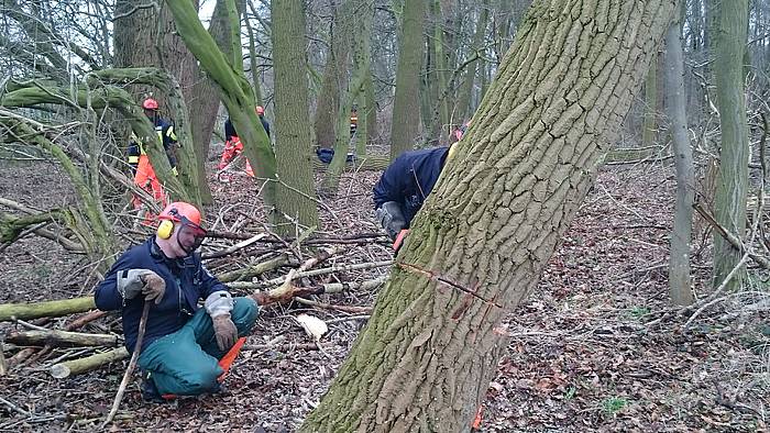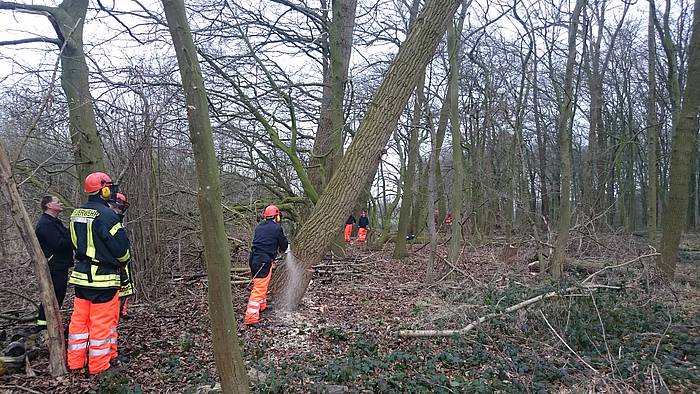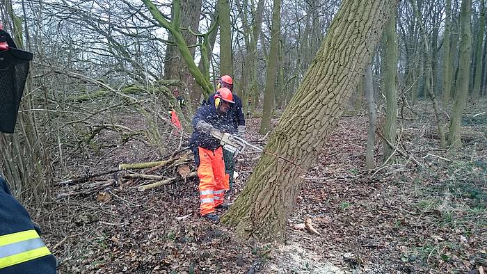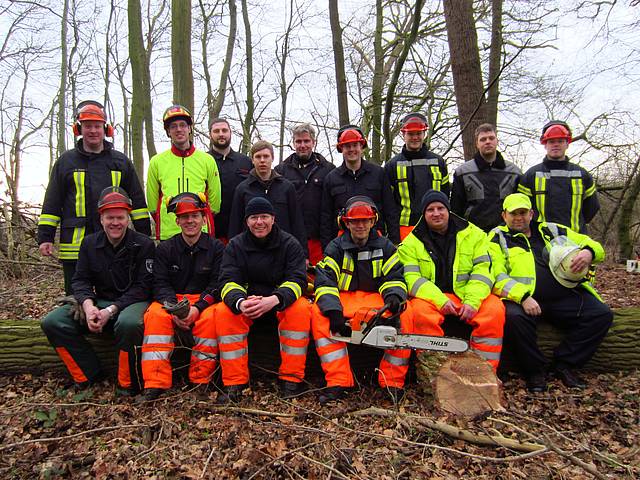 Nachdem im Februar 2014 bereits 12 junge Feuerwehrleute der Freiwilligen Feuerwehr Werne im Umgang mit der Kettensäge ausgebildet wurden, stand in diesem Frühjahr die „Königsklasse“ auf dem Programm. 12 Feuerwehrleute ließen sich im sogenannten Modul 3 „Fällen und Entasten von Bäumen“ ausbilden und lernten, wie man mit beispielsweise durch Sturm vom Umstürzen bedrohten Bäumen umgeht und diese ohne Gefahr fällen kann. Voraussetzung zur Teilnahme war der erfolgreiche Abschluss der ersten beiden Ausbildungs-Module im letzten Jahr.
