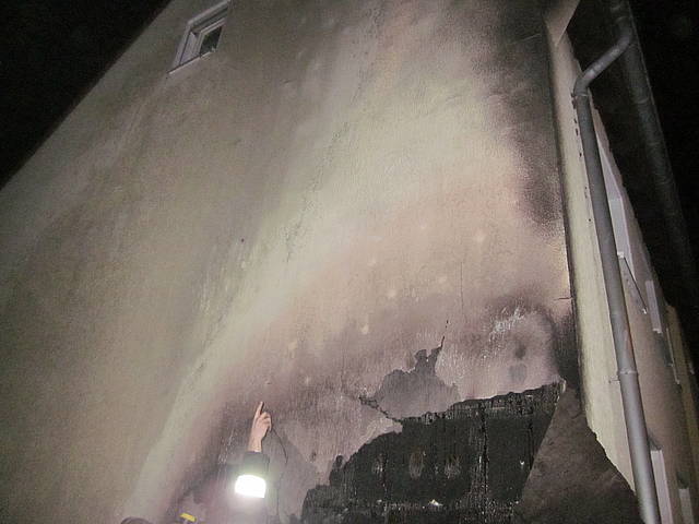 Diese Einsatzstelle wurde nach dem Abarbeiten der weiteren Brände seitens der Feuerwehr nochmals ausgiebig per Wärmebildkamera kontrolliert, da zu befürchten war, dass hinter der Isolierung der Fassade weitere Glutnester existieren.