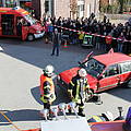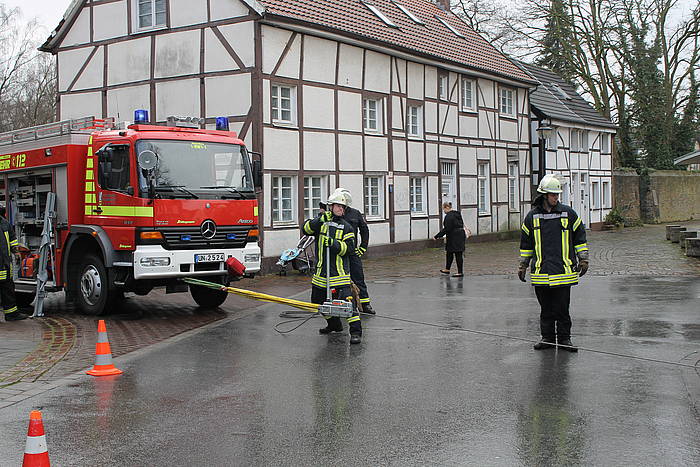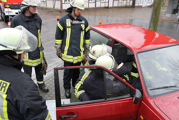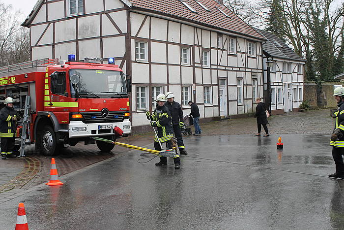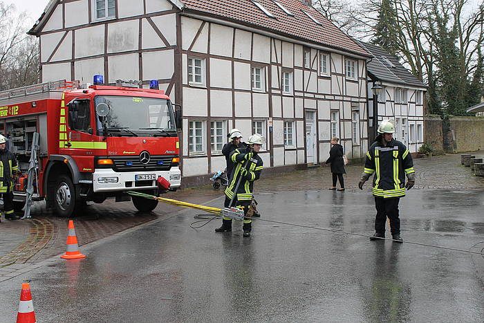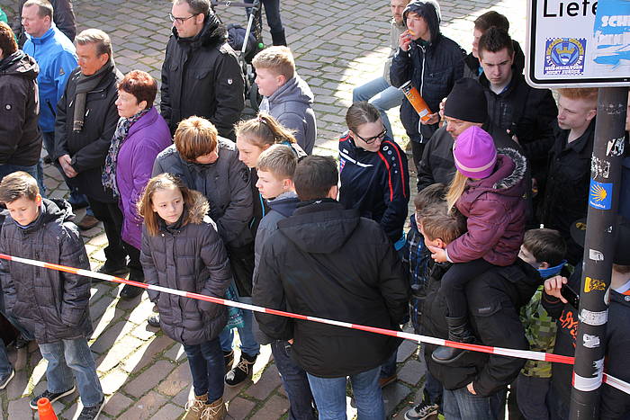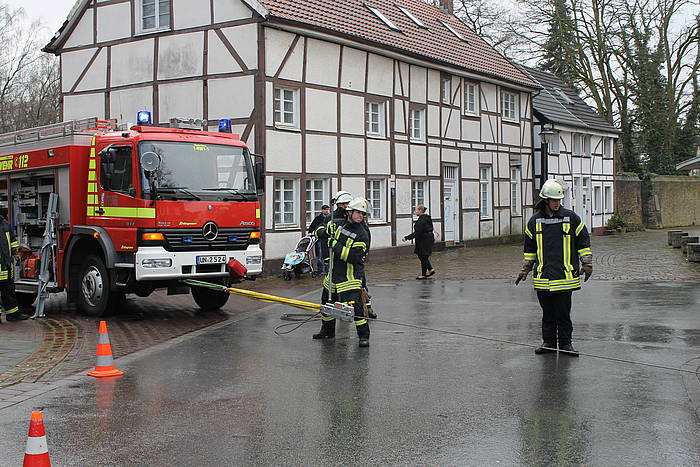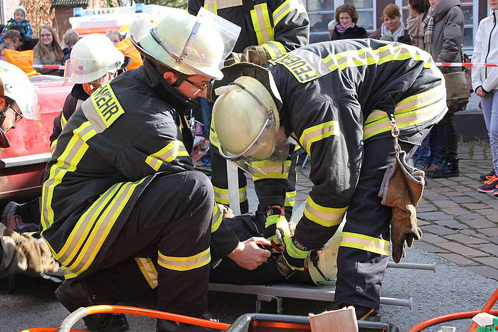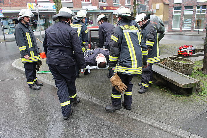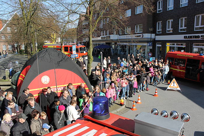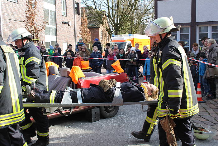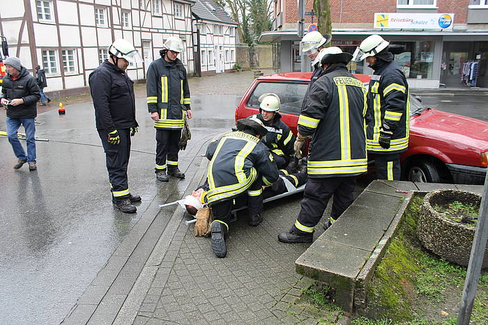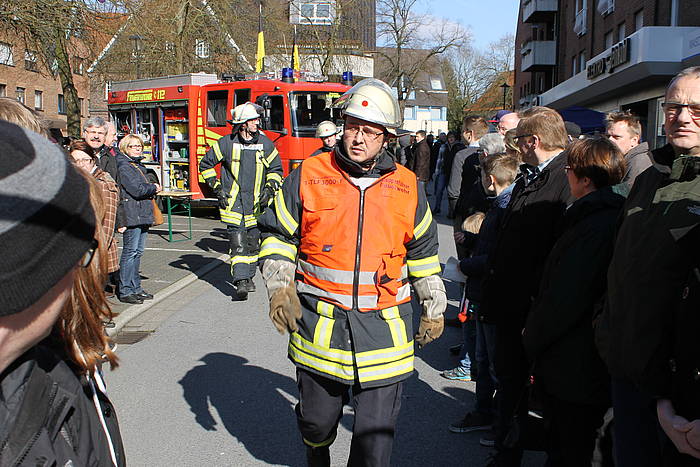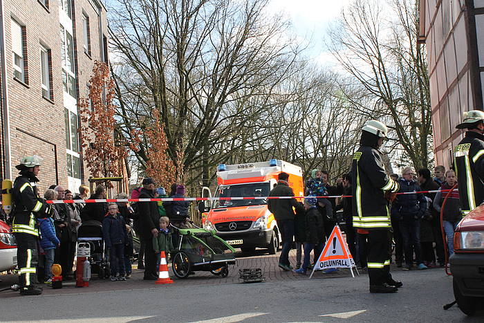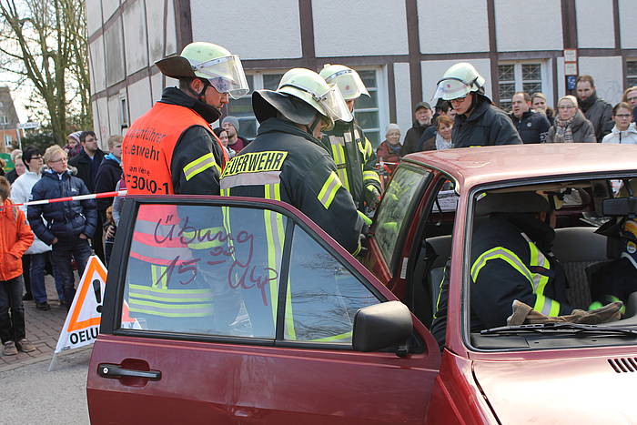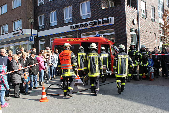 Der Sonntag präsentierte sich aber vollständig anders. Zwar war es immer noch kalt, aber strahlende Sonne und Trockenheit lockten die Gäste wohl aus dem gesamten Umland zu einem Bummel durch die verkaufsoffenen Werner Läden. Auch bei der Feuerwehr war nun einiges los. Um 15:00 Uhr präsentierte man daher eine fachgerechte und nach Feuerwehr-Dienstvorschrift durchgeführte technische Hilfeleistung mit Menschenrettung aus einem verunglückten Fahrzeug. Die Übung wurde über die Lautsprecheranlage des ELW derart kommentiert, dass die Zuschauer jeden der notwendigen Schritte verstehen konnte. Ohne Hektik wurden die Arbeitsschritte durchgeführt und für jeden verständlich erläutert. Diese Übung schaute sich eine durchaus beachtliche Zuschauerzahl an.