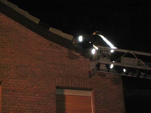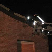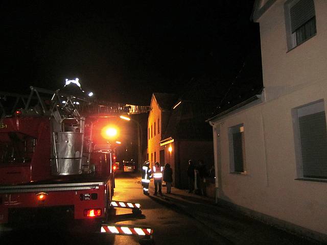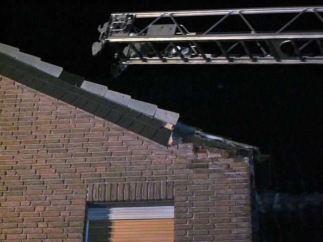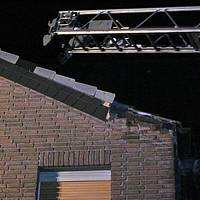 Um 22:02 Uhr musste der Löschzug wieder los, weil sich in der Gleisstraße Giebelabdeckungen an einem Dach durch den Sturm selbstständig machten. Die Bewohner hatten bereit Teile der Abdeckung auf dem Gehweg vorgefunden und die Feuerwehr alarmiert. Mit Hilfe der Drehleiter konnten weitere lose Teile der Verkleidung entfernt und die Gefahr für Fußgänger und Straßenverkehr beseitigt werden. Dieser Einsatz endete um 22:58 Uhr, als die 12 Einsatzkräfte und drei Fahrzeuge wieder einrücken konnten.