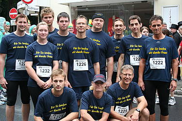 Gruppe 1 landete überraschend mit 1:27:33 Std. auf dem dritten Platz. Die beste bislang erreichte Platzierung auf einem Stadtlauf. Mit 20:47 Minuten war Thorsten Friedrich dabei der Top-Läufer der Gruppe. Eine beachtliche Leistung, da er zum "Warmlaufen" bereits den 5 km-Lauf in 19:50 Minuten absolviert hatte...