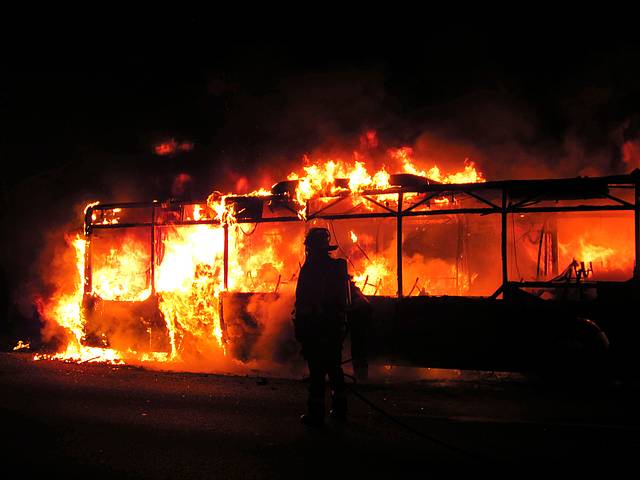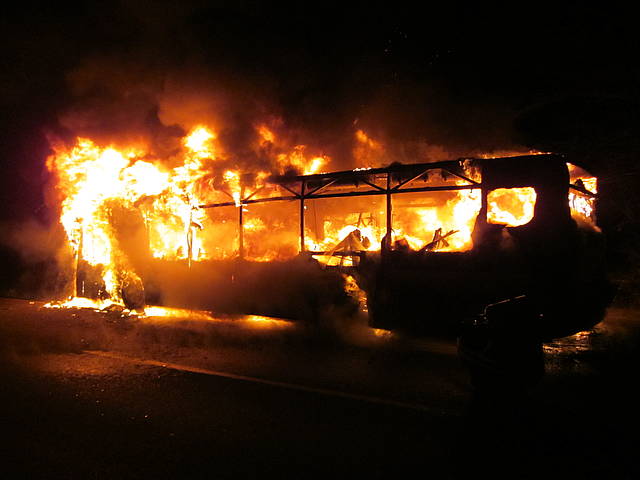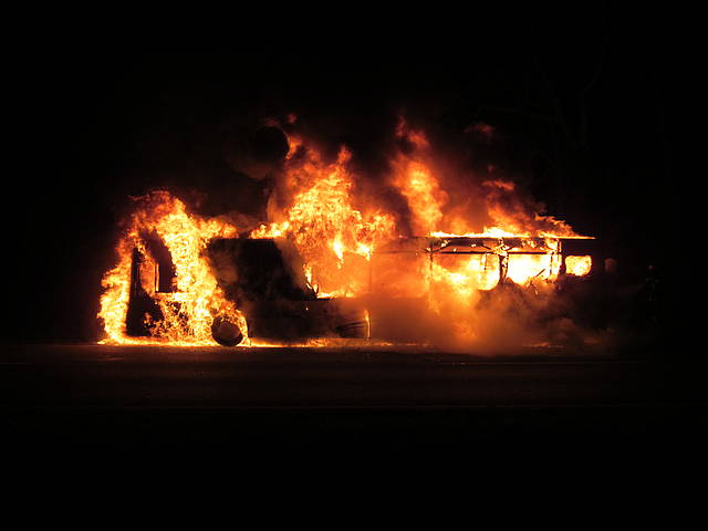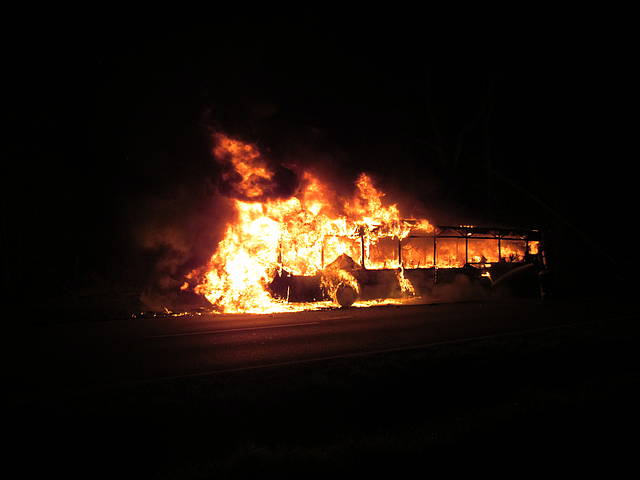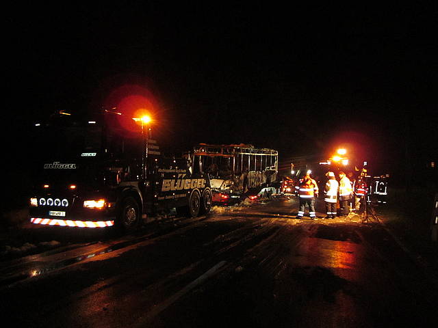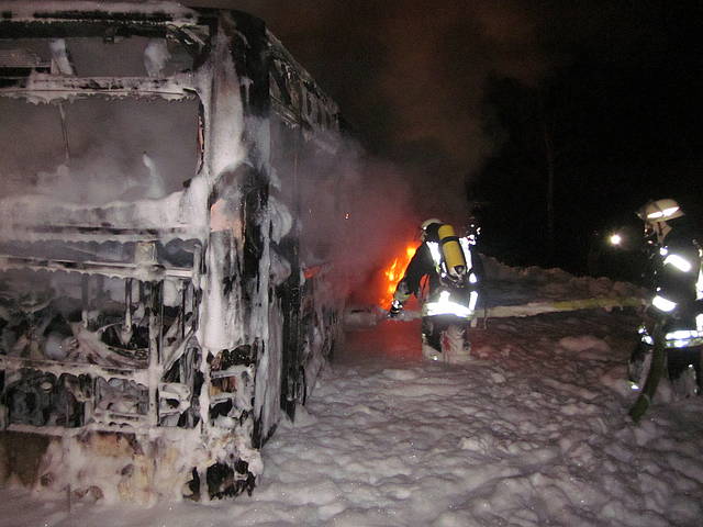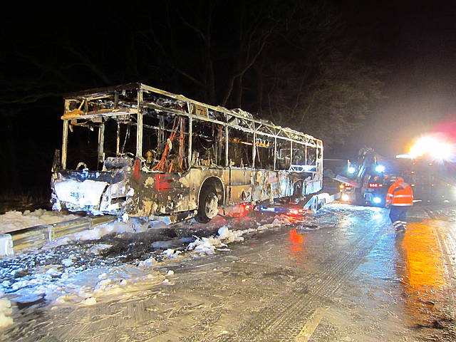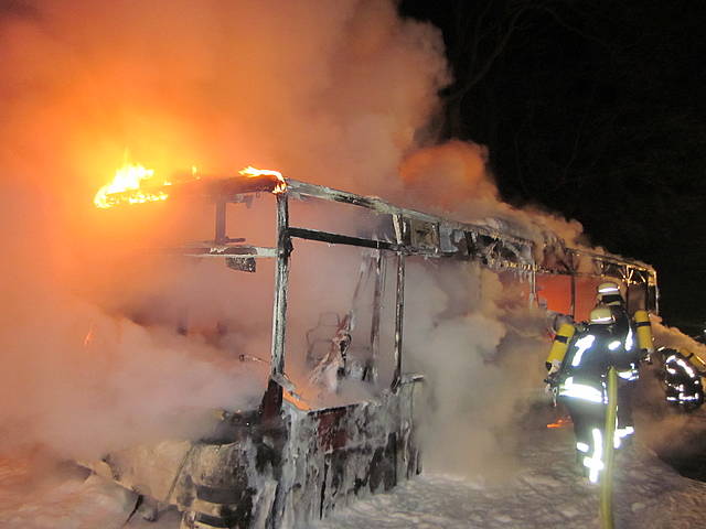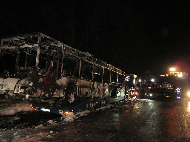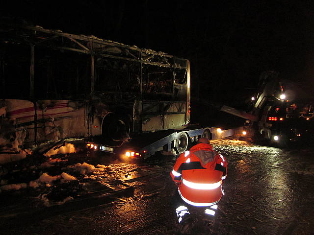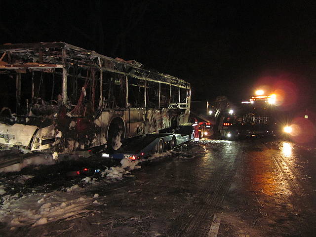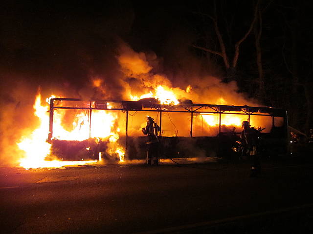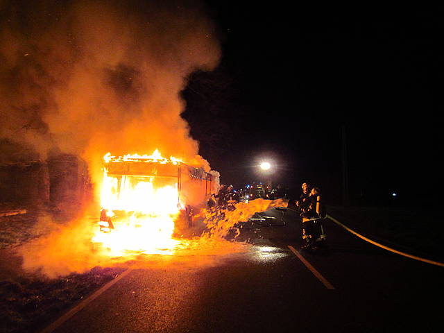 Bus wird bei Fahrzeugbrand vollständig zerstört