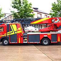 Endlich ist sie da! Ganz inoffiziell fuhr gestern Abend kurz vor 20 Uhr die neue DLK(A) 23/12 an der Feuerwache Stadtmitte der Freiwilligen Feuerwehr Werne ein. Begrüßt wurde sie von vielen Kameradinnen und Kameraden des Löschzugs 1 sowie dem stellvertretenden Wehrführer Jörg Mehringskötter.