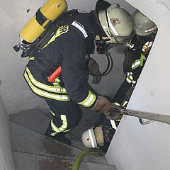 Nach der Menschenrettung wurde sich auf die Brandbekämpfung konzentriert. Diese ist von drei Trupps, ausgerüstet mit schwerem Atemschutz, in kürzester Zeit durchgeführt worden.