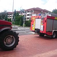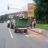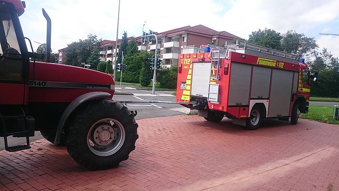 Zunächst konnten die acht Einsatzkräfte der Feuerwehr, die mit drei Fahrzeugen angerückt waren, größere Ölmengen mit einem Bindemittel aufnehmen und verhindern, dass Öl in die Kanalisation eindrang. Der Schlepper wurde mit dem Rüstwagen aus dem Verkehrsraum auf eine geeignete Abstellfläche gezogen.