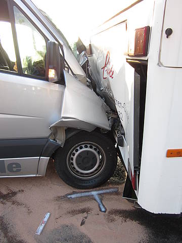 Update 01.09.2015: Wie sich später herausstellte, war ein weiterer Insasse des Sprinters sowie eine Schülerin beim Unfall leicht verletzt worden. Zudem wurden im Laufe des Tages mehrere Kinder von ihren Eltern abgeholt, die unter Kopfschmerzen oder Übelkeit klagten.