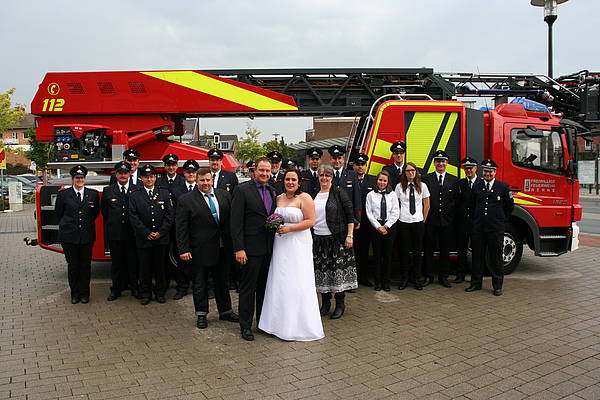 Die Feierlichkeiten fanden erst - trotz Regen - früh am nächsten Morgen ein Ende, für die Ehe von Desirée und Stefan wünscht der Löschzug Stadtmitte natürlich ein niemals folgendes.