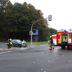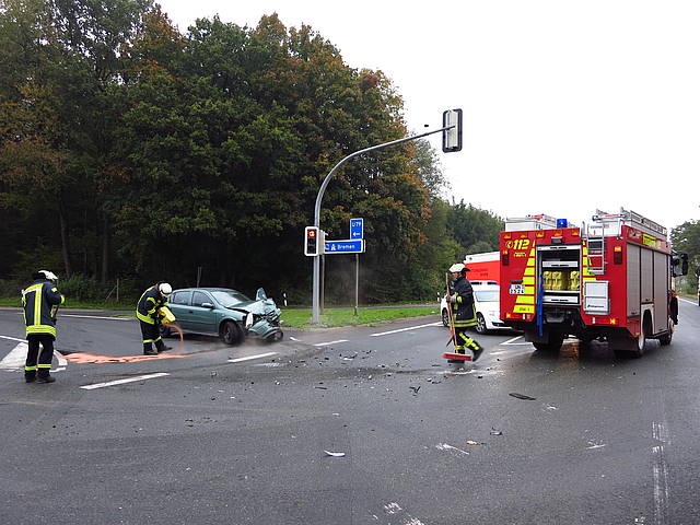 Um 09.34 Uhr wurde der Löschzug Stadtmitte zu einen Verkehrsunfall auf der Nordlippestraße gerufen. In Höhe der Autobahnabfahrt war ein PKW mit einem LKW kollidiert. Entgegen den ersten Meldungen war die verletzte Fahrerin des PKW nicht in ihrem Fahrzeug eingeklemmt. Sie konnte von Mitarbeitern des Rettungsdienstes aus ihrem Fahrzeug befreit werden. Die 10 Einsatzkräfte des Löschzuges Stadtmitte, die mit drei Fahrzeugen vor Ort waren, sicherten die Unfallstelle und streuten auslaufende Medien ab. Während der Maßnahmen musste die Nordlippestraße kurzzeitig gesperrt werden. Der LKW war zumindest noch so weit fahrbereit, dass er die Strecke bis zum Autohof aus eigener Kraft zurücklegen konnte. Der stark beschädigte PKW musste abgeschleppt werden.
